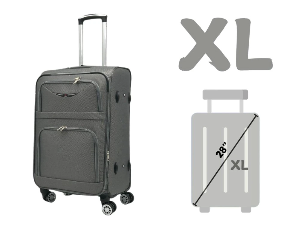 - XL Rozměry—Vnější: 78 × 50 × 31 cm (Výška × Délka × Šířka), Vnitřní(měřeno uvnitř skořepiny kufru): 66 × 44 × 23 cm; Hmotnost: kolem 3,8kg(včetně koleček); Objem: cca 90-95 l