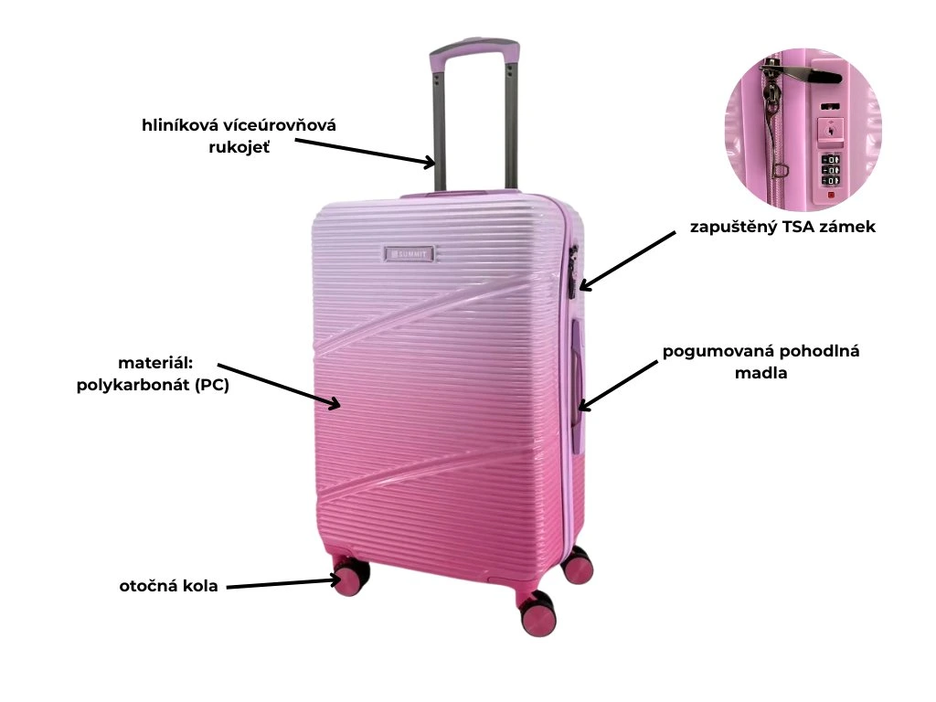 SUMMIT 2421 Cestovní kufr sada - ombré v tmavě růžové barvě